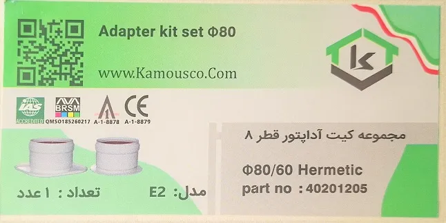 مجموعه آداپتور 60به80 (E2) جهت نصب روی دریچه های دودکش قطر ۱۰۰ طراحی شده ؛ بدین گونه که آداپتور با چهار عدد پیچ سر مته ، روی دریچه دودکش نصب شده و دریچه را از قطر 60 به قطر 80 تبدیل می نماید . این محصول جهت استفاده در دودکش های آلومینیومی و استیل تک جداره کاربرد دارد.
